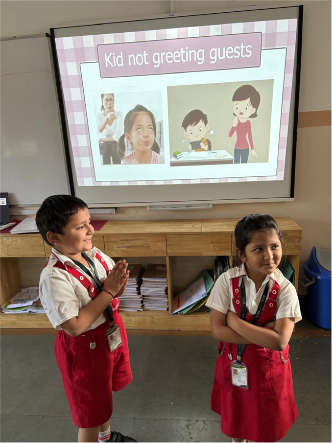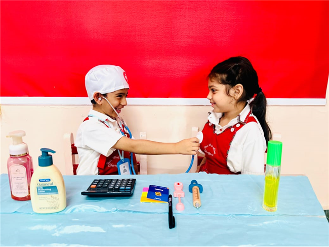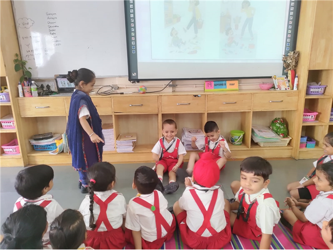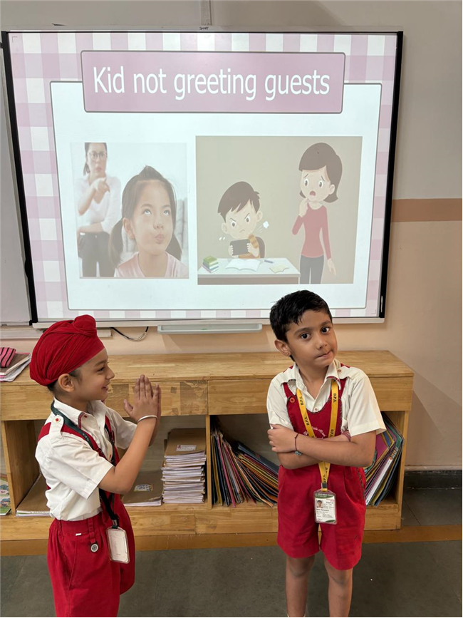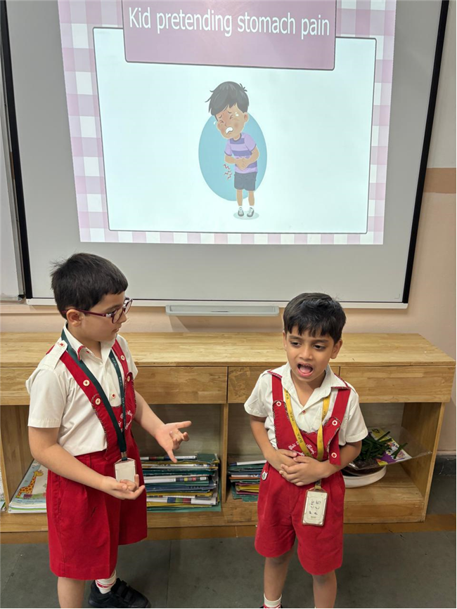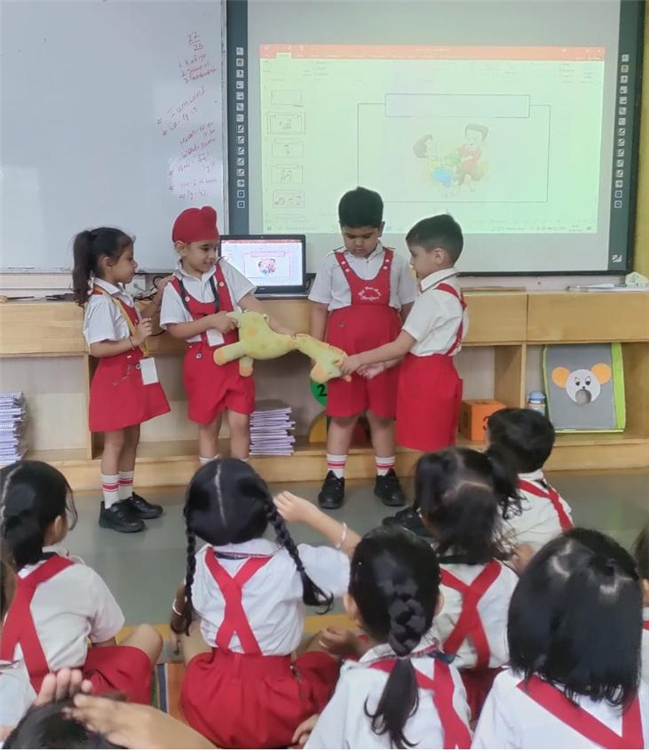 To enhance creativity, problem-solving ability and social skills amongst children, ‘Real Problems Pretend Play Activity’ was conducted for the Pre-Primary classes of Delhi Public School, Chandigarh on September 19, 2025. The aim of this activity was to allow children to think critically and use their imagination to resolve everyday challenges in a playful manner. Students of each level were presented with real-life situations through power point slides such as children fighting, child pretending stomach pain etc.