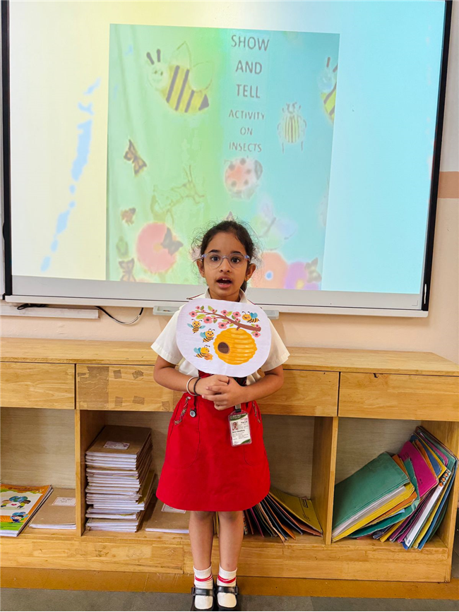 At DPS Chandigarh, we believe in nurturing curiosity and educating our children about the world around them. Learning about bugs and insects is an important step in helping children appreciate nature and understand its tiny creatures. To make this learning more engaging, a ‘Show and Tell Activity’ was organized for the young learners of class Prep ll on September 18, 2025. Children brought different models, pictures, and toys of insects such as butterflies, ladybugs, ants, bees etc. They confidently spoke about the insects they chose, sharing their unique features and importance in nature. The activity not only enriched their knowledge about bugs and insects but also enhanced their speaking skills and self-confidence.