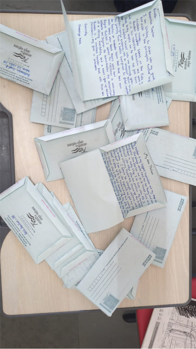 On the occasion of World Postal Day, students of Class VII participated enthusiastically in an Inland Letter Writing Competition. Each student penned a heartfelt message to their role model on an actual inland letter provided by the Post Office. The activity aimed to revive the traditional art of letter writing while fostering expression and gratitude. Students showcased creativity and sincerity in their words, making the event both educational and nostalgic. It successfully highlighted the significance of postal services in connecting hearts beyond technology.