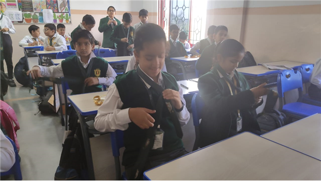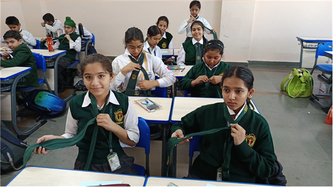 The students then dived into a tie-and-lace skill-training activity, picking up a practical life skill. Creativity flowed as they participated in a colouring competition, bringing vibrant drawings to life. The Swachhta slogan writing activity drove home the importance of cleanliness, with students enthusiastically cleaning their surroundings.