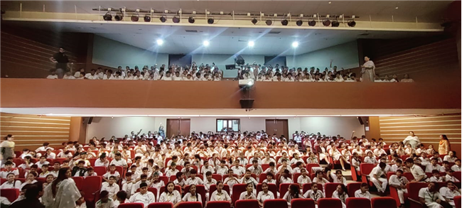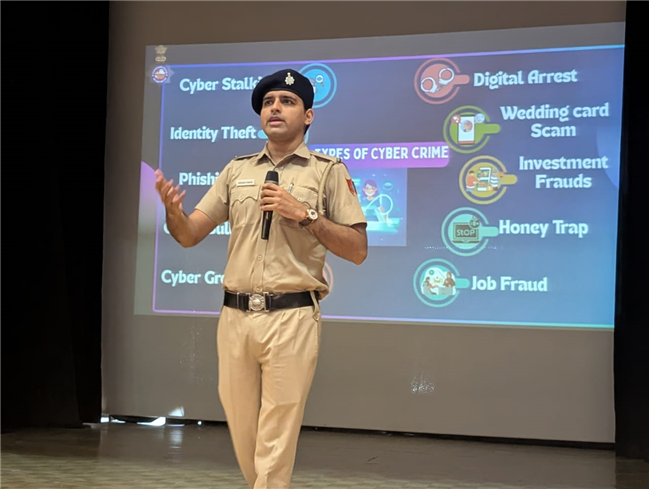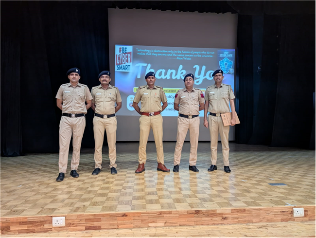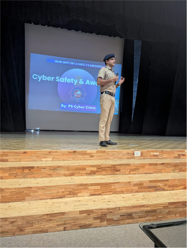 The officers enlightened the students about various aspects of cyber safety, highlighting real-life cases related to phishing, identity theft, cyberbullying, morphing, and other cyber frauds. The session was highly interactive and engaging, with students actively participating and seeking answers to their queries. It proved to be a valuable learning experience, emphasizing the importance of responsible and cautious behavior in the digital world.