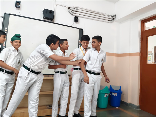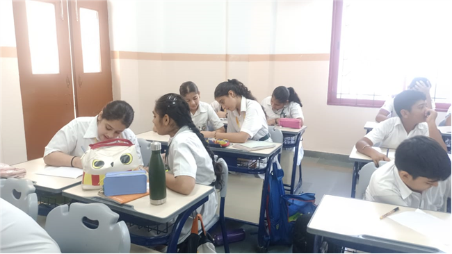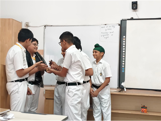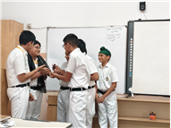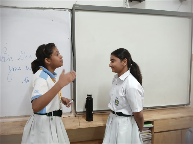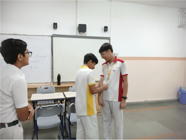 On September 29, 2025, Class 8 students participated in an activity inspired by Gandhiji's values. Presented with real-life scenarios, students worked in groups, applying Gandhian principles to resolve conflicts. They enthusiastically shared ideas, reflecting on how to "be the change" in each situation.