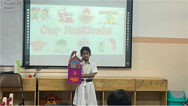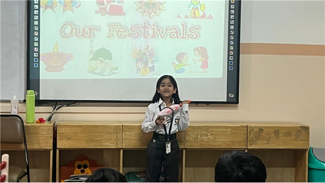 On October 15, 2025 Delhi Public School, Chandigarh conducted a dynamic and culturally relevant public speaking activity for students of Class l. The activity was designed with a dual focus: providing a robust platform for young students to hone their public speaking skills, including clarity, confidence and stage presence, while simultaneously diving deep into the cultural, historical and social significance of India's diverse festivals. The event was highly successful in achieving its aim, celebrating both the student's newfound oratorical ability and the enduring richness of Indian culture.