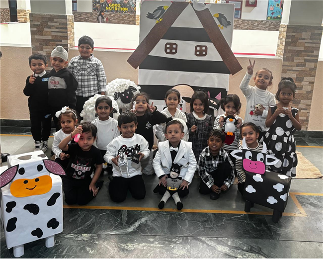 Just like we can't imagine a world without colours, a world without black and white colours is unimaginable too. Continuing in our endeavour to make our little ones aware about the importance of colours, students of Class Nursery of Delhi Public School, Chandigarh celebrated ‘Black and White Day’ on November 10,2025. Children were dressed in black and white attire and enthusiastically participated in show and tell activity. Childeren enjoyed pasting bindis on the picture of a  penguin to reinforce the concept. It was indeed a fun-filled learning day for the little ones.