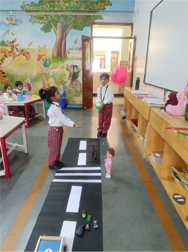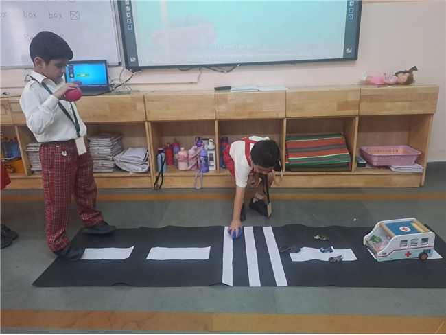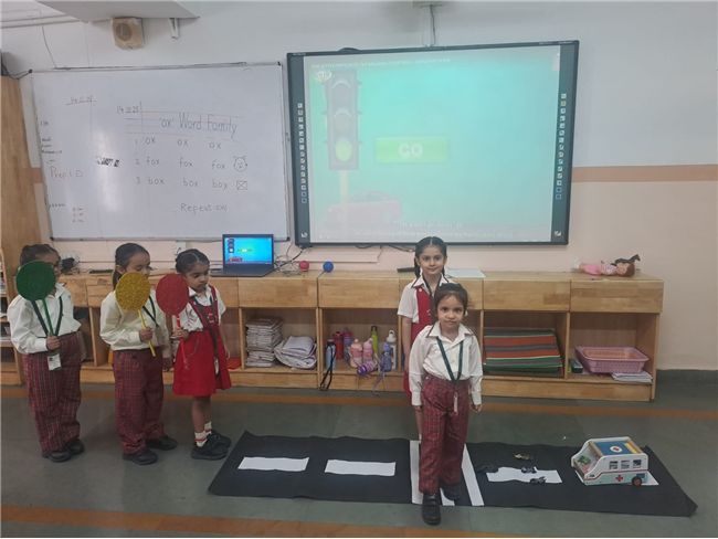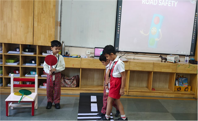 An activity on ‘Road Safety’ was conducted for the children of Class Prep I at Delhi Public School, Chandigarh. The session aimed to make the little ones aware of the importance of following safety rules when on the road. The children enthusiastically learnt about different traffic rules, the correct way to cross the road using the zebra crossing and the meaning of traffic lights. They were also guided about the importance of wearing seat belt while travelling in a vehicle. Adding to the excitement, the children participated in a lively role play on road safety, where they acted out and practiced the rules they had learnt. This hands-on activity helped them understand the concept better in a fun and engaging way.