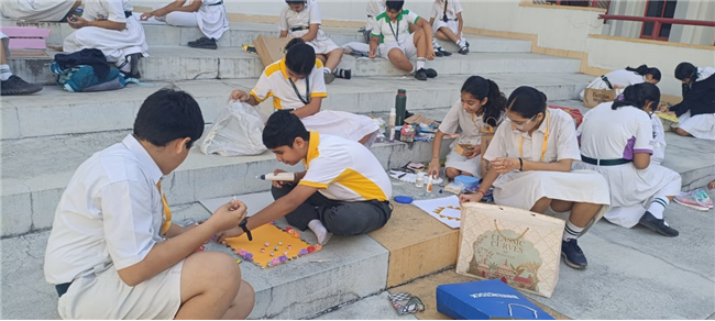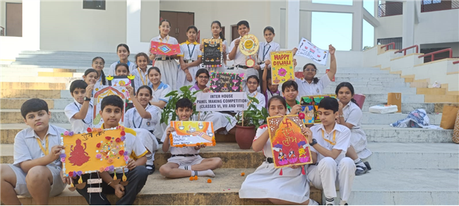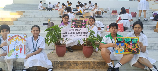 The Inter-House Welcome Panel Competition themed “Auspicious Welcome Panel” was held on 13th October 2025 for classes VI, VII and VIII. The event was a vibrant and artistic celebration of Diwali, showcasing students’ creativity, imagination and cultural spirit.