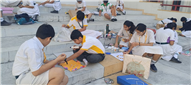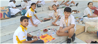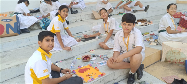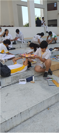 Participants designed beautiful panels on A3 sheets, using colourful base materials and traditional Diwali motifs such as diyas, lotus, swastik, kalash, Om and shlokas. Their use of bright hues—gold, red, orange and yellow—along with mirrors, beads, flowers and coloured paper added elegance and festive charm.